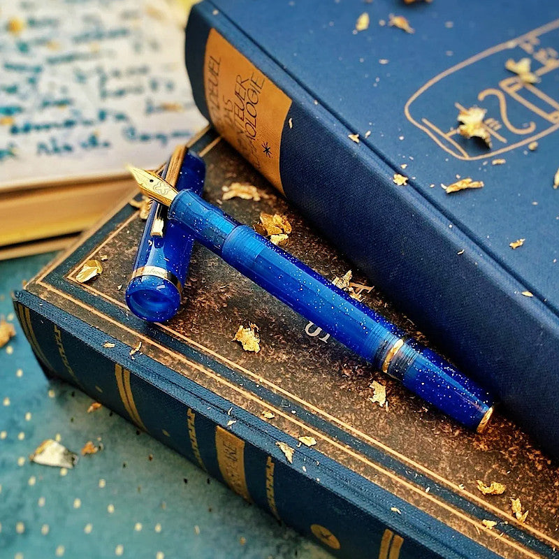 Esterbrook’s first ever sparkling JR design, the Fantasia’s semi-translucent blue acrylic body is imbued with silver glitter and completed with gold plated trim. With a screw-close cap and premium gold plated steel nib, the JR is an ideal travel companion.