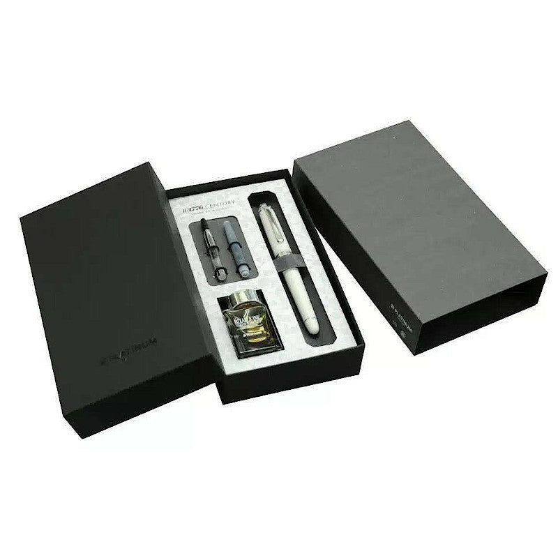 Supplies in a Platinum gift box with a 700A converter, a 20ml bottle of Ink and one blue black ink cartridge.