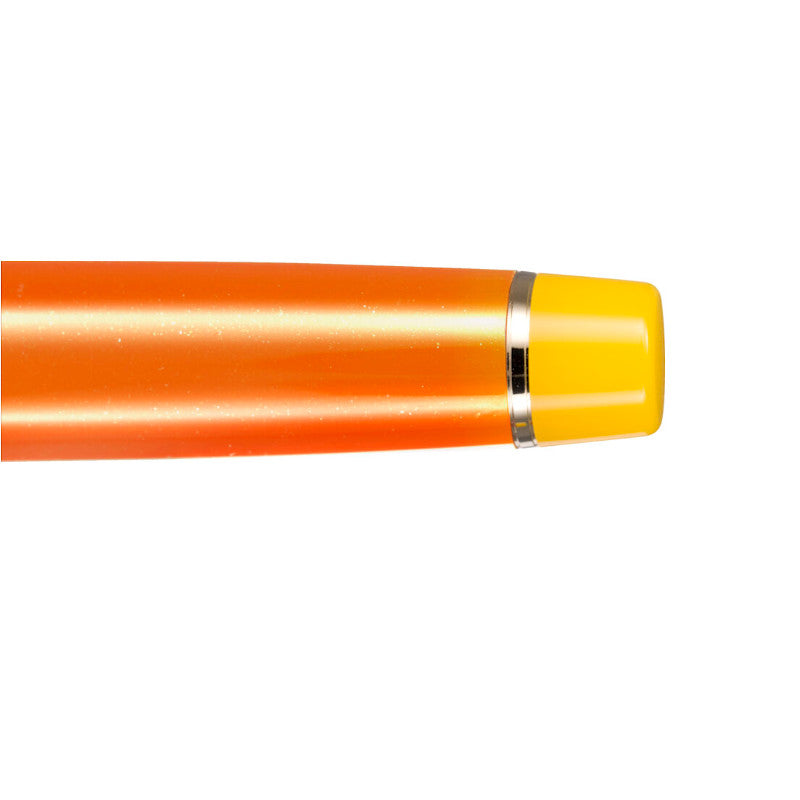 This Sailor fountain pen is made of precious resin in orange brown with yellow and has a 21K gold nib. Gold trim.