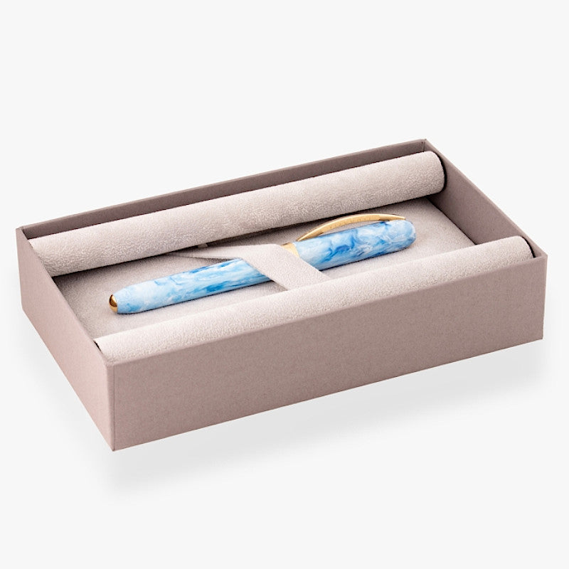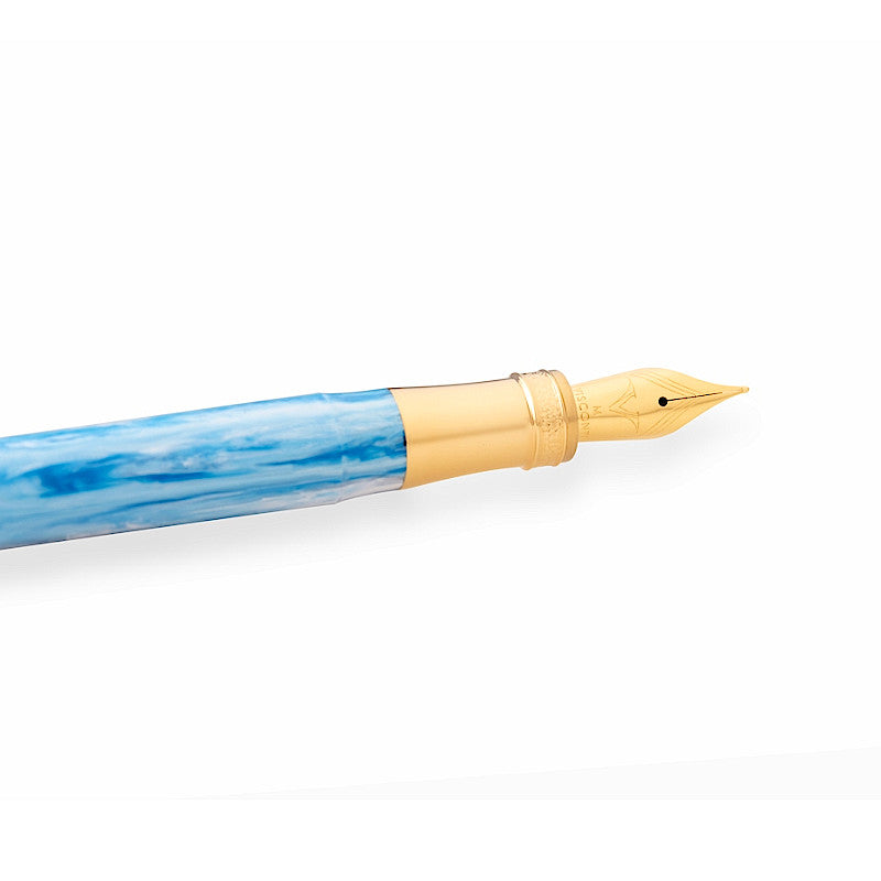 The Comedìa fountain pen mounts a large steel nib, combining writing performance and aesthetic pleasantness. The plating of the nib, like that of the other trims, follows a precise color scheme to best represent the cantica from which the pen is inspired: ruthenium for Hell, Caronte and yellow gold for Paradiso, Virgilio.